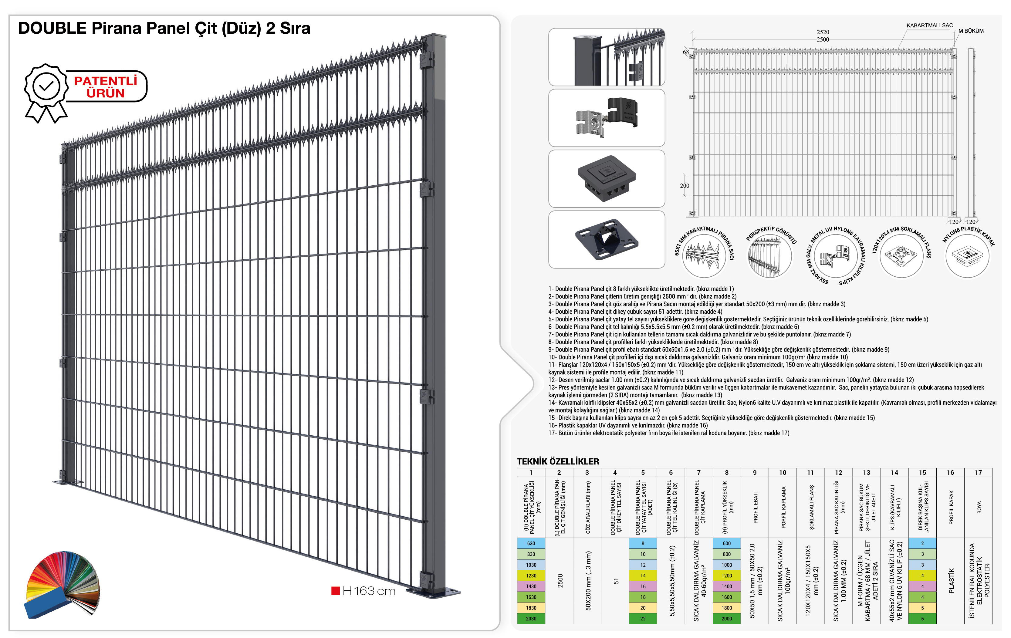 • Sağlam bir yapısı vardır, ekstra mukavemet için üçgen baskılar verilmiştir ve Panelin yatay ve dikey tellerinin arasına hapsedilerek üretilir.
