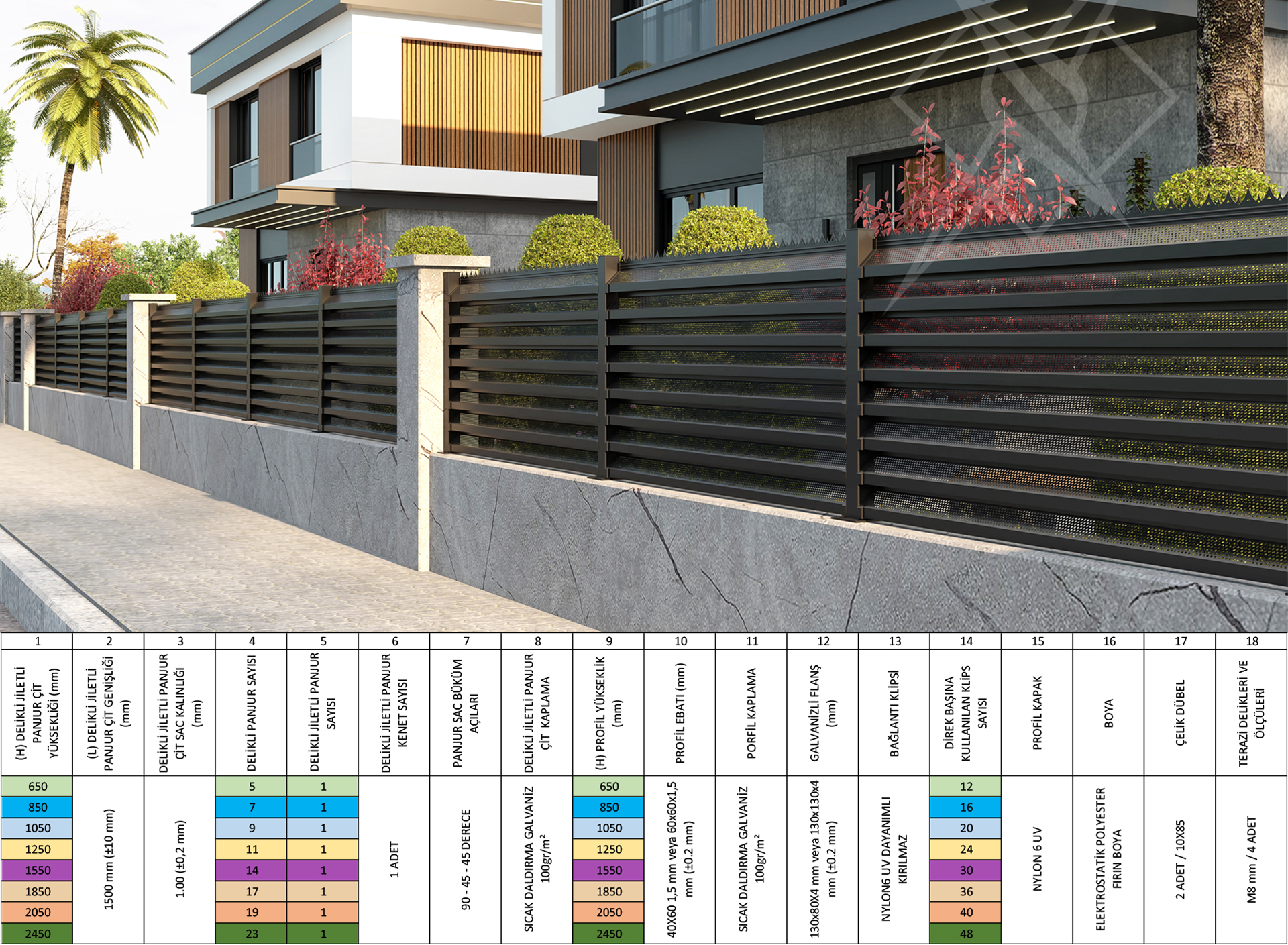 - Dayanıklı ve uzun ömürlü galvanizli malzeme ve Elektrostatik Toz Boya.