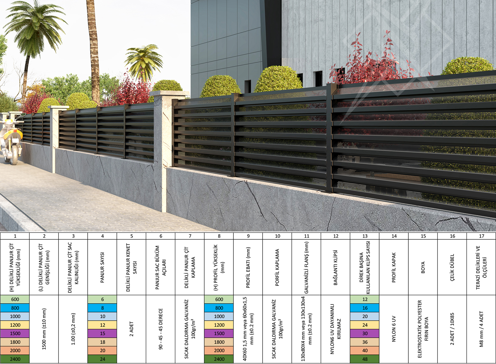 - Dayanıklı ve uzun ömürlü galvanizli malzeme ve Elektrostatik Toz Boya.