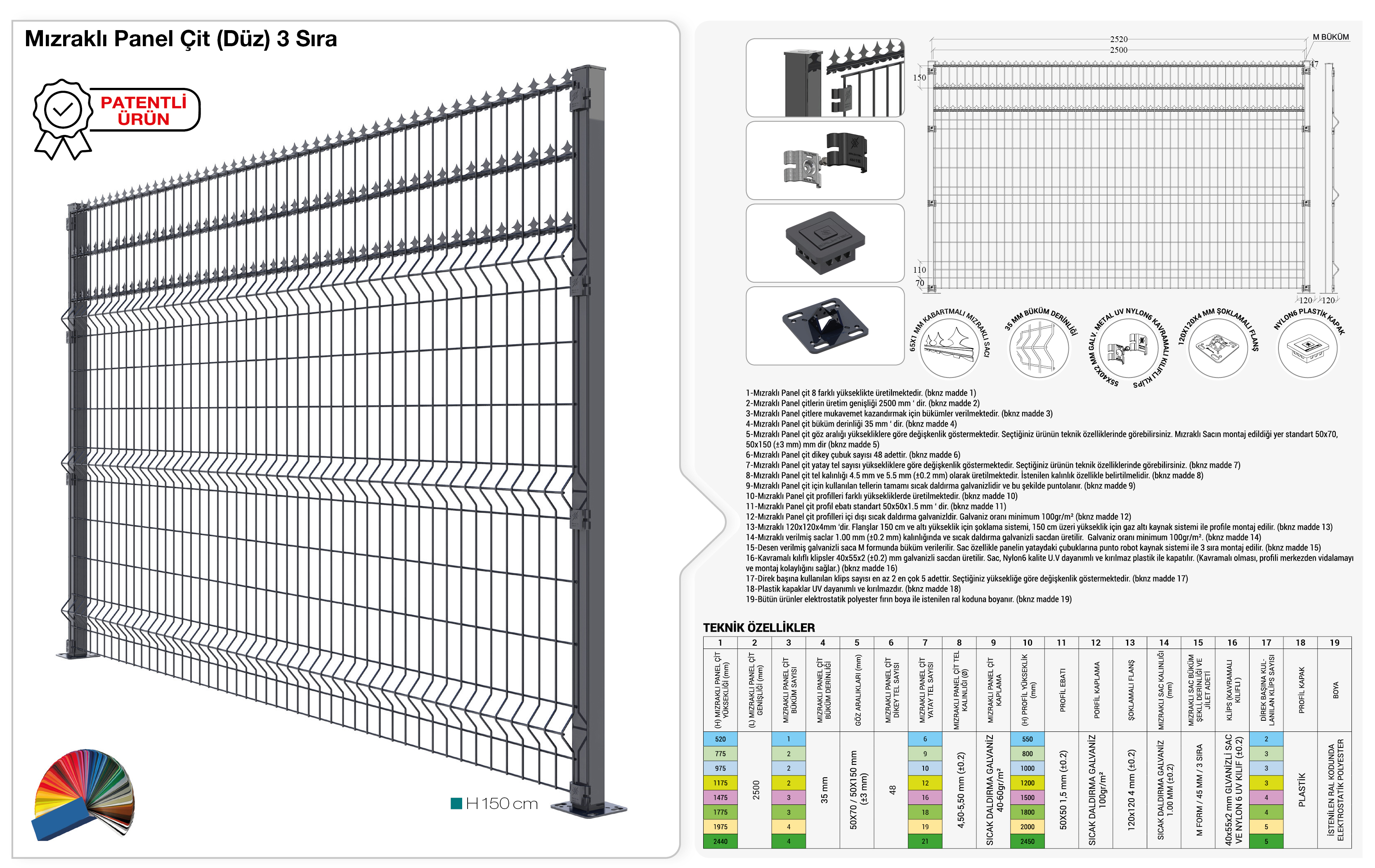 - Sağlam bir yapısı vardır, bükümlüdür ve panelin yataydaki çubuklarına montaj edilir.
