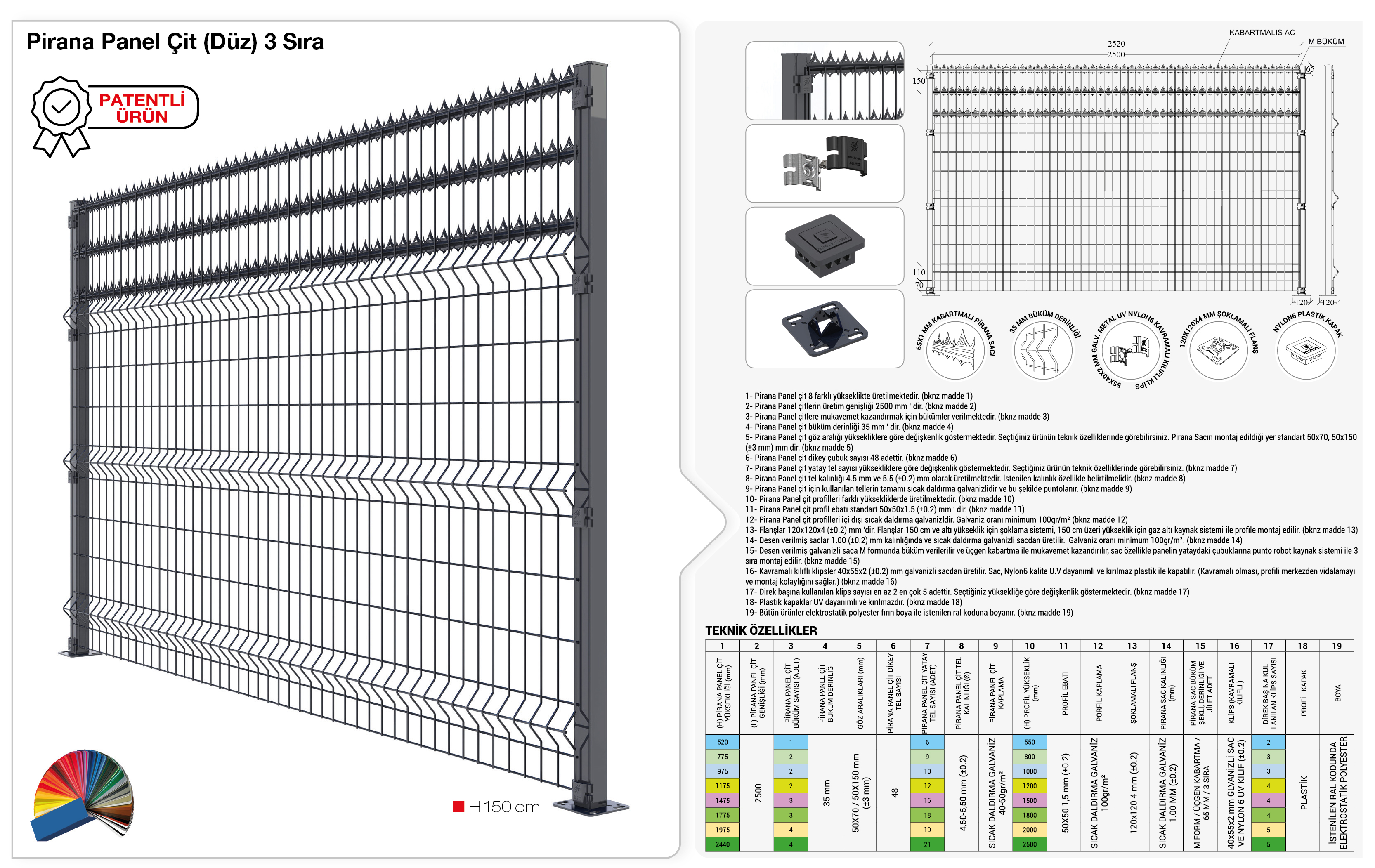 - Caydırıcıdır, keskin Pirana desenleri sayesinde tırmanmayı engeller.