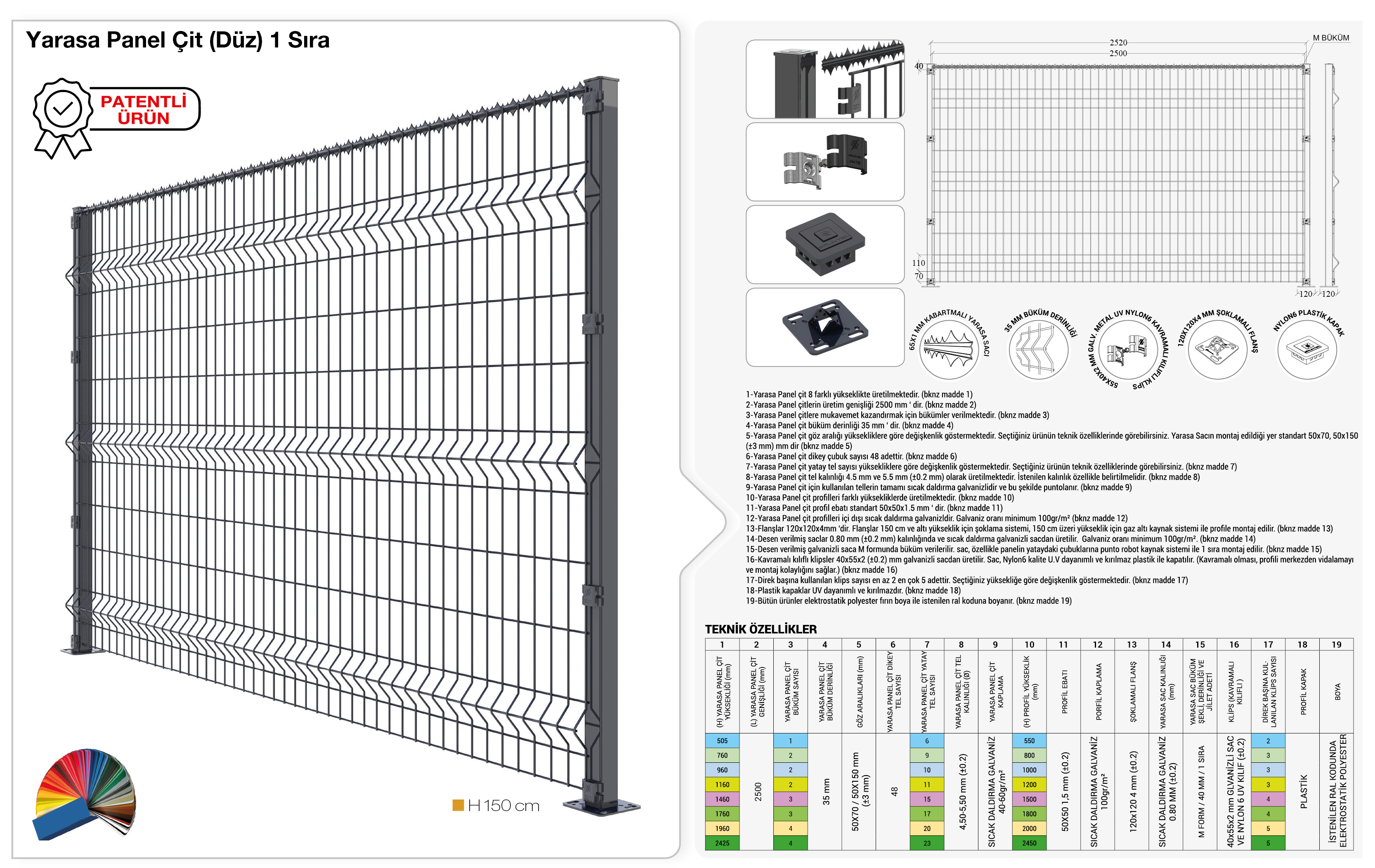 Yarasa Panel Çit – Düz – Bir Sıra